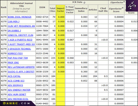 پاسخ: بله، مجلات زیادی هستند که در JCR ثبت شده اند اما ایمپکت فکتور آنها صفر است و یا هیچ ایمپکت فکتوری برای آنها ثبت نشده است. همانطور که در تصویر زیر قابل مشاهده است مجلات با رنک 8279(بخش JCR Science Edition) ایمپکت فکتور ندارند و یا ایمپکت فکتور آنها صفر است.