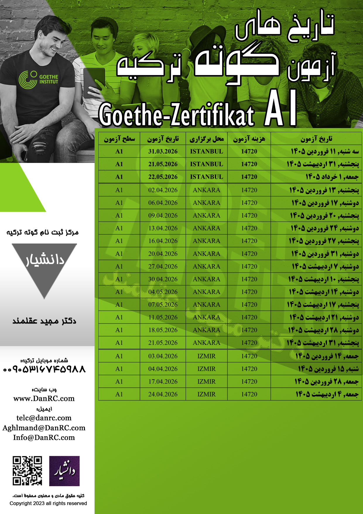 - تقویم آزمون گوته سطح A1 در شهر استانبول، ازمیر و آنکارا