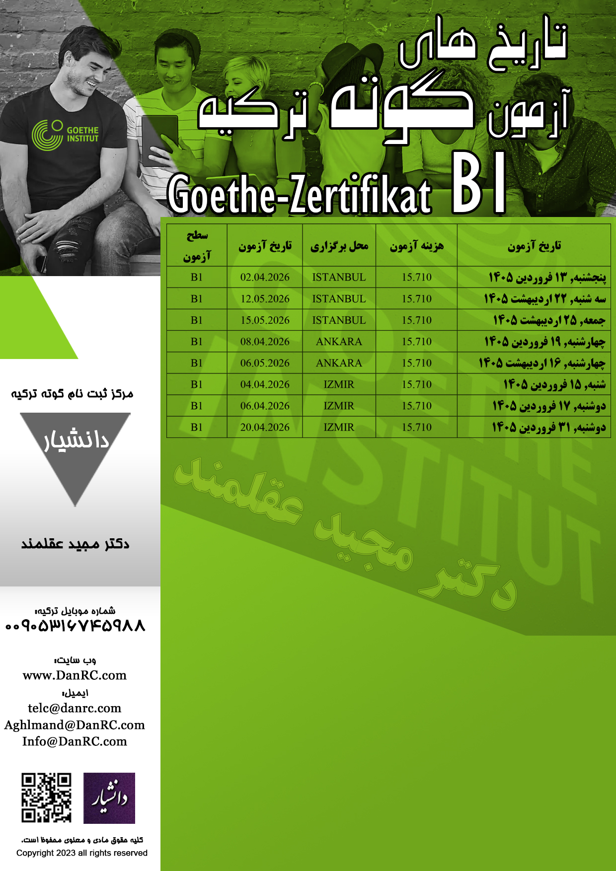 - تقویم آزمون گوته سطح B2 در شهر استانبول، ازمیر و آنکارا