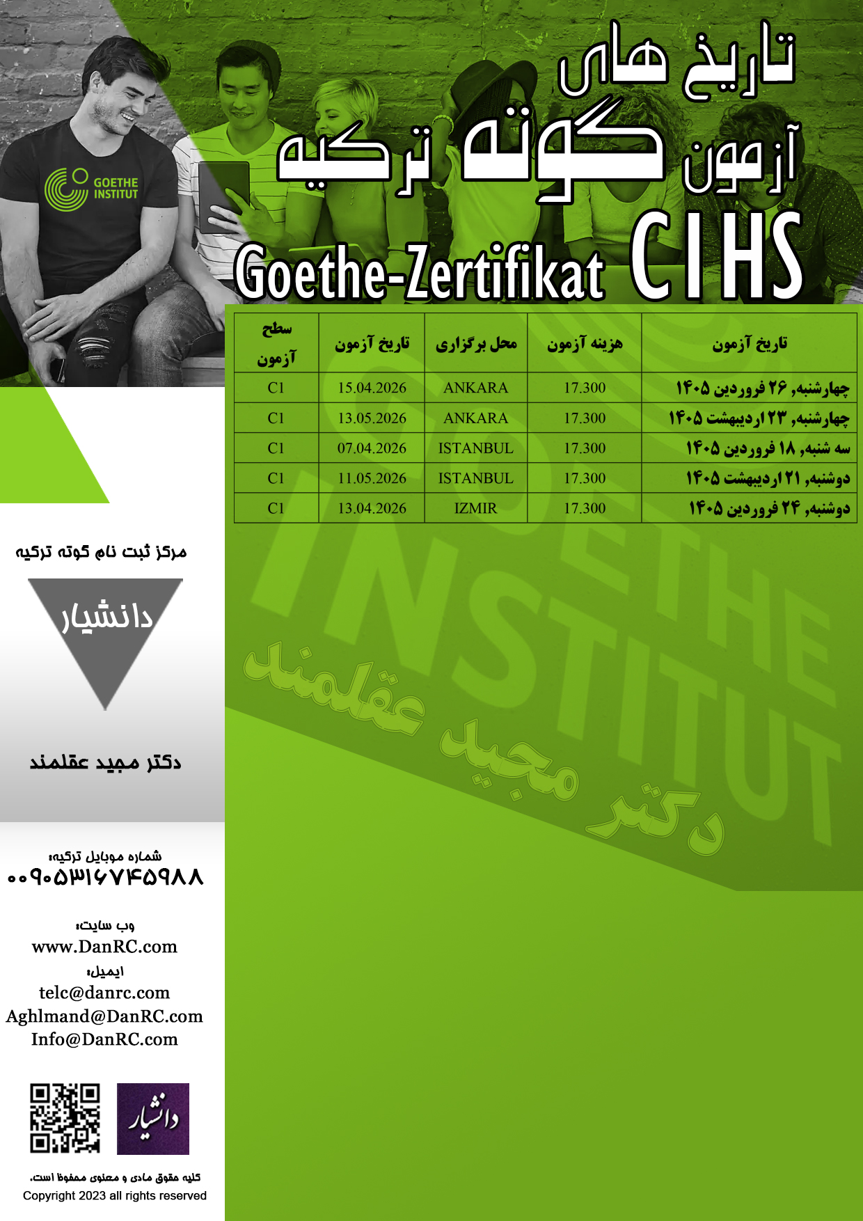 - تقویم آزمون گوته سطح C1HS در شهر استانبول، ازمیر و آنکارا