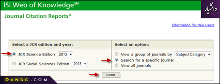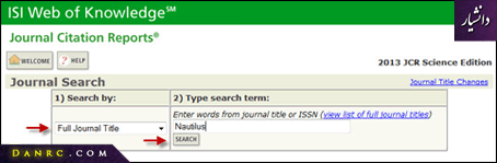 از منو، Full Journal Title را انتخاب و نام مجله را در قسمت مورد نظر بنویسید. سپس بر روی Submit کلیک کنید.