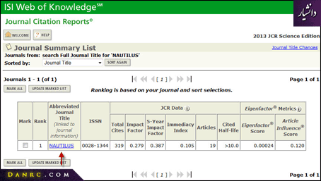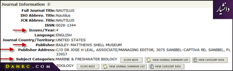 در JCR اطلاعات تکمیلی درخصوص هر مجله ارایه می شود. آنچه که ما به آن نیاز داریم اطلاعات شناسنامه ای مجله است که به صورت زیر از JCR استخراج می شود.