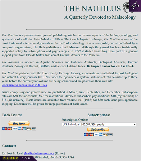 با وارد شدن به سایت اصلی مجله (http://shellmuseum.org/nautilus/index.html) اطلاعات را مورد بررسی قرار می دهیم (تصویر9). با بررسی اطلاعات ارایه شده می توان نتیجه گرفت که وب سایت nautilusjournal.net به مجله Nautilus تعلق ندارد و توسط کلاه برداران ساخته شده است.
