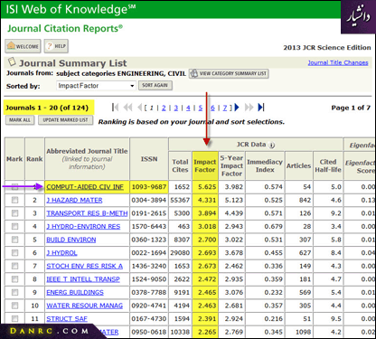 همانطور که در تصویر 3 قایل مشاهده است در گروه مهندسی عمران 124 مجله وجود دارد. بیشترین ضریب تاثیر 5.625 است که به مجله Computer-Aided Civil and Infrastructure Engineering تعلق دارد. با کلیک بر روی عنوان مجله می توانید اطلاعات بیشتری از مشخصات و نحوه محاسبه ی ضریب تاثیر 2 ساله و موارد دیگری بدست آورید.