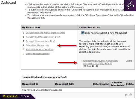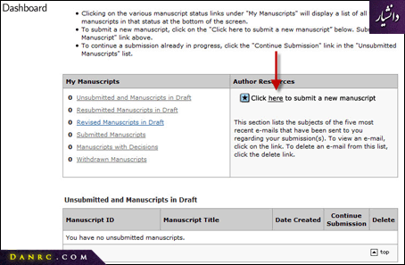 جهت ثبت نام مقاله جدید بر روی HERE کلیک کنید (تصویر 3).