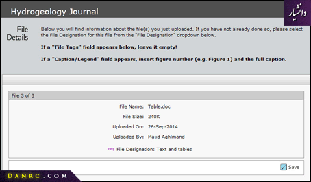 تعداد فایل ها در مجلات مختلف تفاوت است. در بعضی از مجلات باید فایل Title Page نیز در سیستم ضمیمه شود و یا فایل مقاله در دو فایل ضمیمه می شود، با نام نویسنده و بدون نام نویسنده.