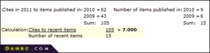 ضریب تاثیر حاصل نسبت استنادها به تعداد مقالات چاپ شده در دوسال قبل مجله است. مجله PROGRESS IN QUANTUM ELECTRONICS با ISSN 0079-6727 دارای ایمپکت فکتور هفت است. می توانید نحوه محاسبه ایمپکت فکتور را در شکل زیر مشاهده نمایید.